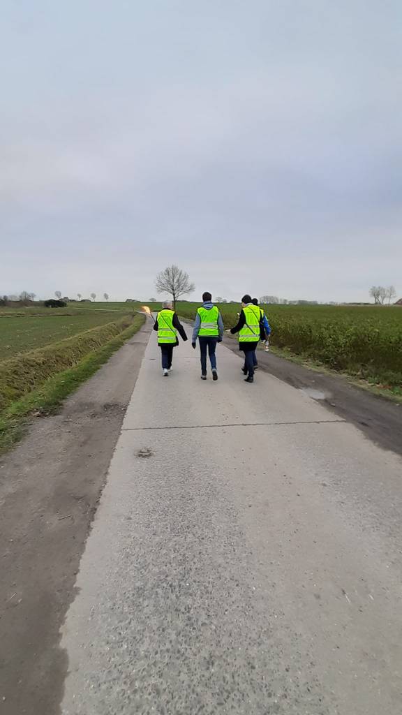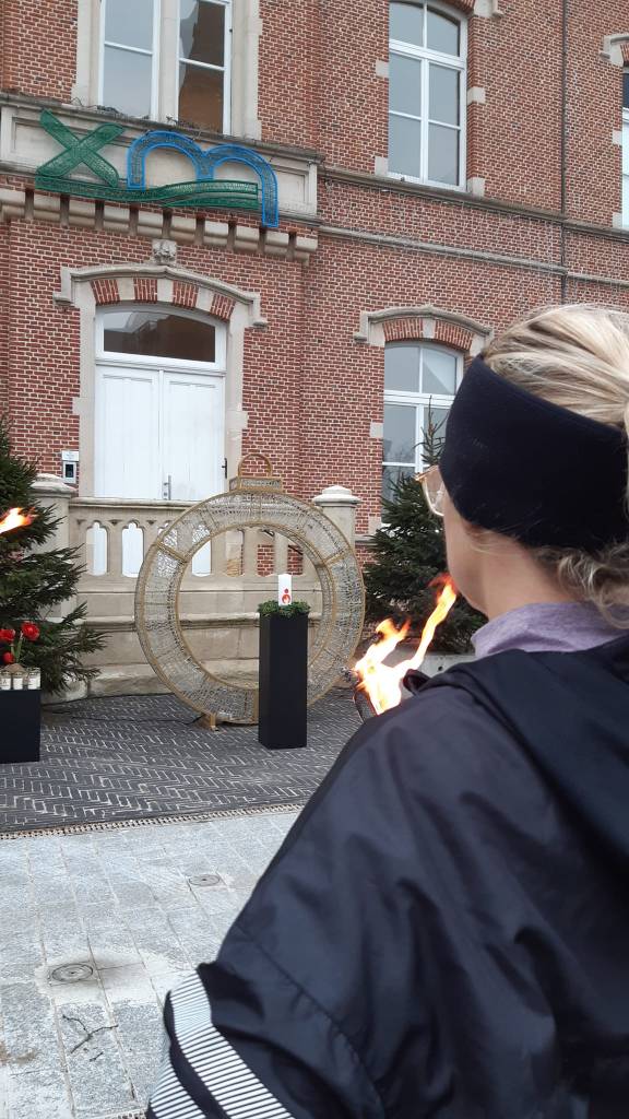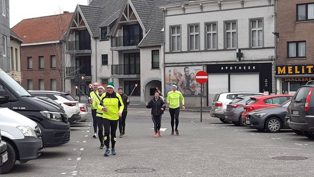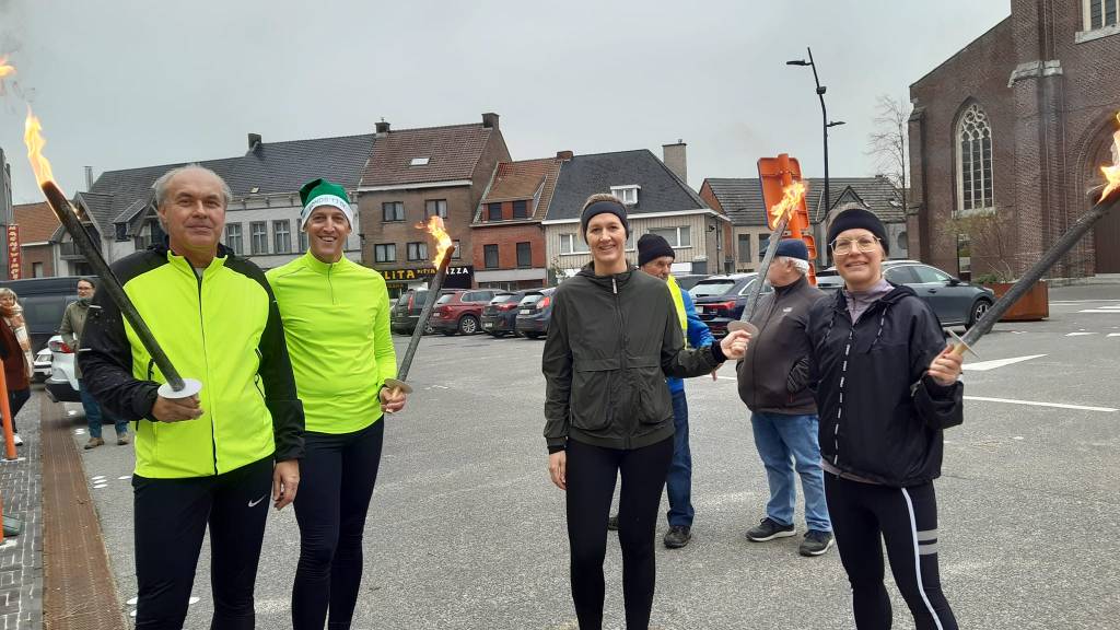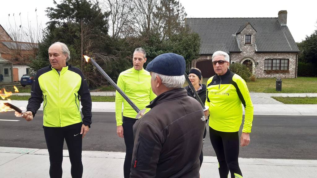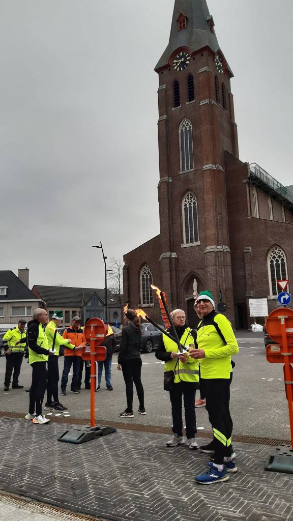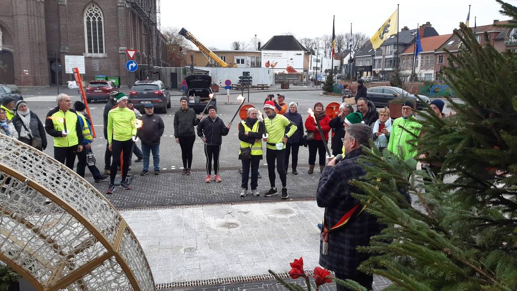 Een delegatie lopers vertrok vanuit Nazareth, via Lozer, naar het gemeentehuis van Kruishoutem. Van daaruit vertrokken een aantal wandelaars, samen met Pasar, naar de kerk van Nokere.